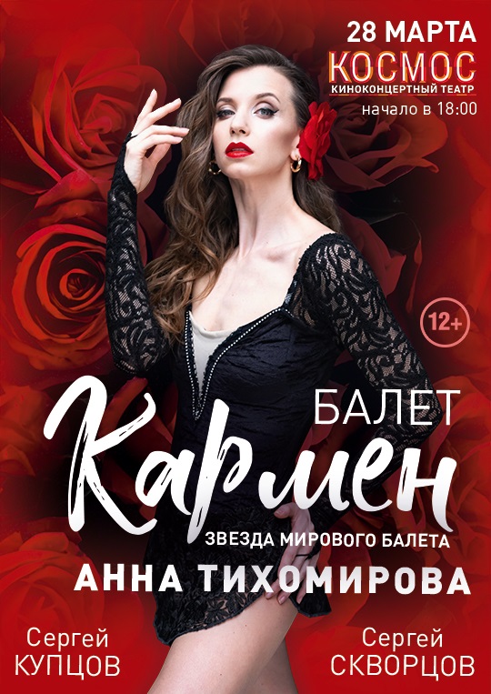 К 100-летию М. М. Плисецкой посвящается БАЛЕТ ЖОРЖА БИЗЕ «КАРМЕН» Погрузитесь в мир страсти и рока с балетом «Кармен»! Эта завораживающая история любви, ревности и свободы, рассказанная языком танца, никого не оставит равнодушным. Яркие костюмы, пылкая музыка Жоржа Бизе и виртуозное исполнение артистов перенесут вас в знойную Испанию, где разворачивается трагическая судьба цыганки Кармен и солдата Хозе. Это не просто балет, это настоящая драма, в которой переплетаются любовь и смерть, предопределение и свобода выбора. Каждый жест, каждый взгляд на сцене пронизан глубоким смыслом, заставляя зрителя сопереживать героям и размышлять о вечных ценностях. Это произведение искусства, которое будоражит воображение и остается в памяти надолго. КАРМЕН – АННА ТИХОМИРОВА Анна Тихомирова - звезда мирового балета. Первая Солистка Большого театра. Лауреат Московского международного конкурса Артистов балета. Обладатель Гран-При телеканала «Культура» в конкурсе «Большой балет». Член жюри проекта «Большие и маленькие» на канале «Культура». Была ученицей и репетировала в Большом театре с такими метрами педагогами как, Марина Кондратьева, Надежда Грачева, Надежда Павлова. Также работала с Людмилой Семенякой, Михаилом Лавровским, Борисом Акимовым, Александром Ветровым, Светланой Адырхаевой, Алексеем Фадеечевым, Владимиром Никоновым и множеством Народных Артистов Большого театра. ХОЗЕ – СЕРГЕЙ КУПЦОВ Сергей Михайлович Купцов родился в Алматы в 1991 году. В 2009 году окончил Алматинское хореографическое училище имени Александра Селезнева. В 2009–2010 годах работал ведущим солистом в Театре «Русский балет» под руководством Вячеслава Гордеева. В 2011–2015 годах исполнял главные партии в Театре классической хореографии под руководством Меликова. В 2015–2016 годах Сергей был солистом Московского академического музыкального театра имени К. С. Станиславского и Вл. И. Немировича-Данченко. В 2016–2018 годах работал в Театре классической хореографии «La Classic» под руководством Эрика Мелихова. С 2018 по 2022 год Сергей работал в Государственном академическом Большом театре России. В 2022–2024 годах — ведущий солист Самарского академического театра оперы и балета. С 2025 года Сергей Купцов — ведущий солист Московского государственного театра балета под руководством Людмилы Титовой. Среди достижений Сергея — золотая медаль Гран-при Азии 2015 года. В его репертуаре ведущие партии во многих балетах, среди которых «Дон Кихот», «Щелкунчик», «Лебединое озеро», «Спящая красавица», «Жизель», «Ромео и Джульетта», «Кармен». ТОРРЕАДОР – СЕРГЕЙ СКВОРЦОВ В 2008 году Сергей Скворцов окончил Московскую Государственную Академию Хореографии. В 2009 году был принят в Днепропетровский Театр Оперы и Балета в качестве ведущего солиста. В 2012 году переехал в Россию, в город Чебоксары и стал Ведущим солистом Чебоксарского Театра Оперы и Балета. С 2016 года и по сей день является премьером в театре «Moscow State Ballet» под руководством Людмилы Титовой. Так же, Сергей, неоднократно является приглашённым артистом на всевозможных конкурсах и фестивалях. Так в июле 2021 г. балетные критики, после фантастического фурора в балете «Бахчисарайский фонтан» окрестили Сергея званием «звездный танцовщик». Сергей — лауреат международных конкурсов Asian Grand Prix 2015-го года. За спиной у Сергея многочисленные туры по странам Е