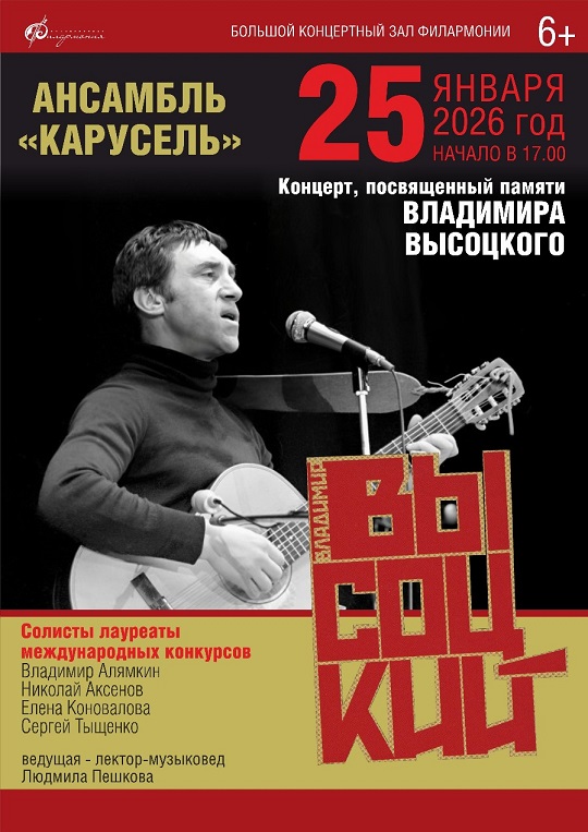 Концерт, посвященный памяти Владимира Высоцкого, с участием солистов филармонии в сопровождении ансамбля "Карусель"